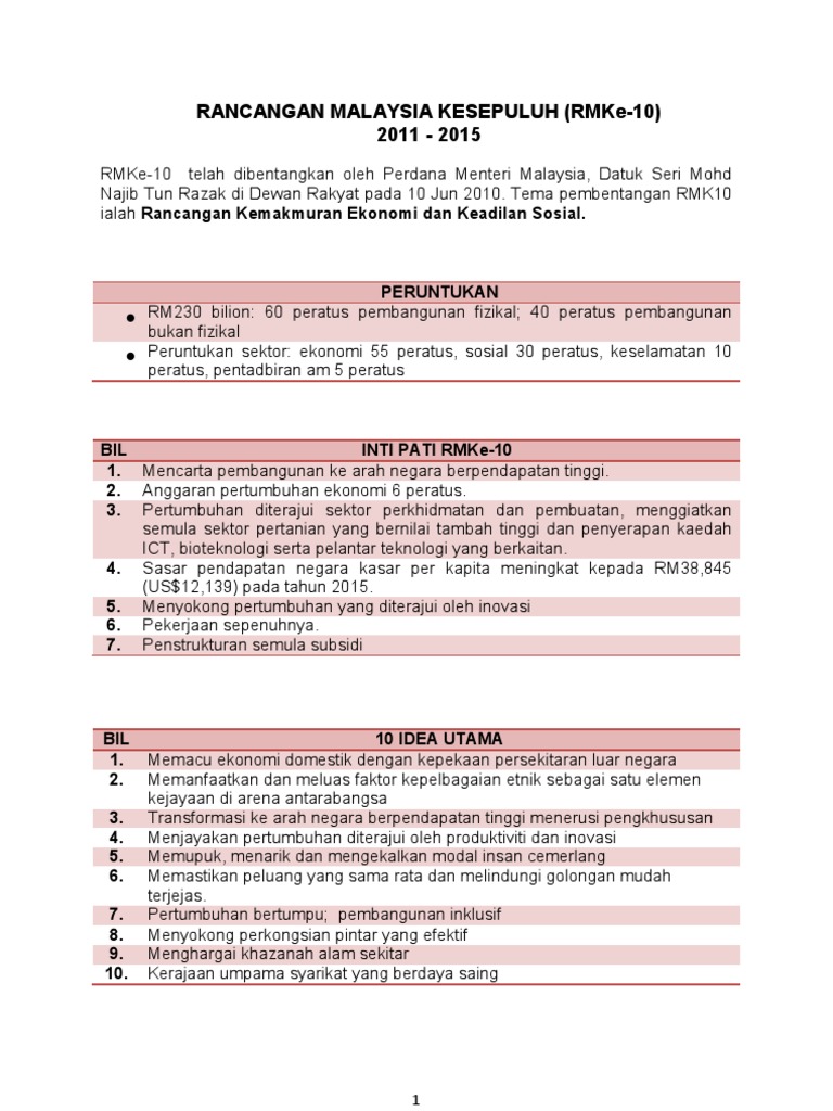 Rancangan Malaysia Ke 10 Rmk 10 Pdf